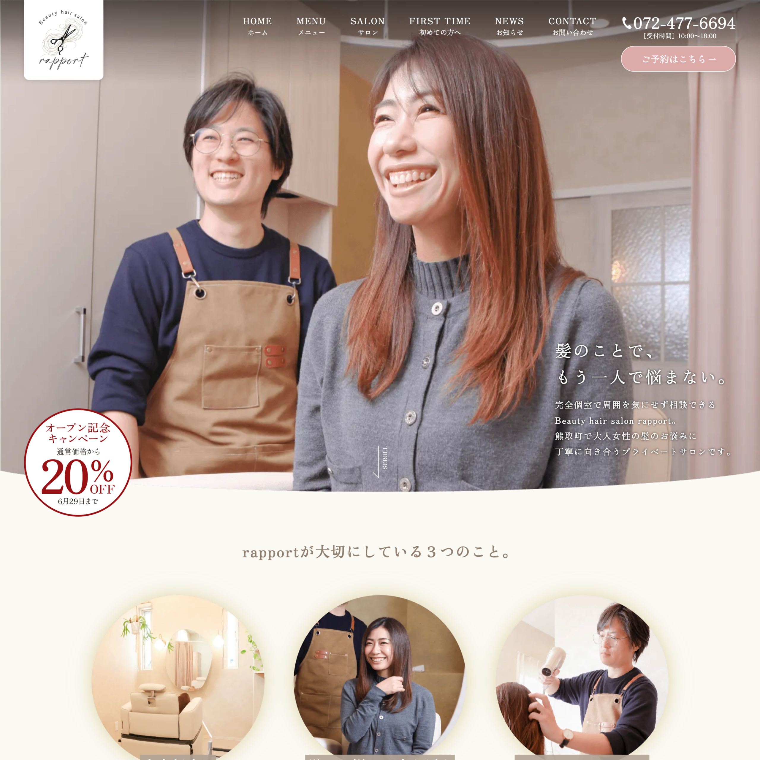 rapport様らしさを大切にしながら、ご来店を検討されるお客様に安心感を持っていただけるホームページとなるよう制作しています。
